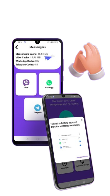 Reserve your RAM for ultra-important data. Optimize the space on your phone to store valuable information. Identification and removal of inactive applications and redundant files. Let your phone run fast down a